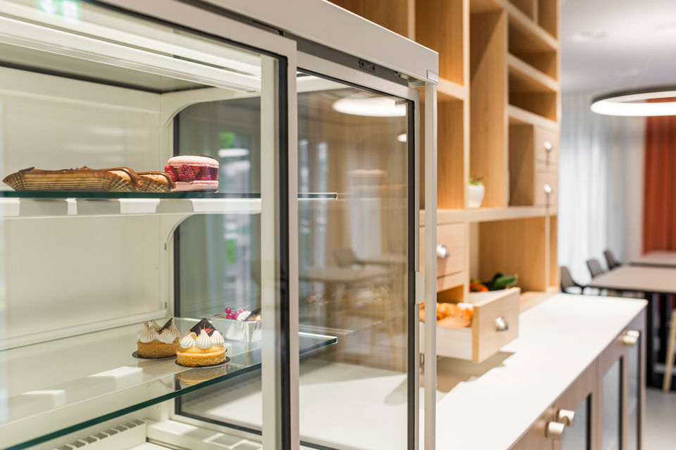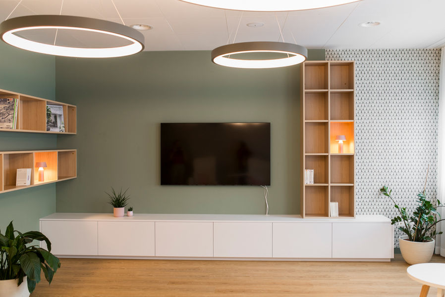 Une partie du mobilier sur mesure a également été créé par Kosm Sàrl: la réception, l’espace cafétéria, le meuble TV et le salon de coiffure. Les fonctions ont été coordonnées en étroite collaboration avec les utilisateurs.