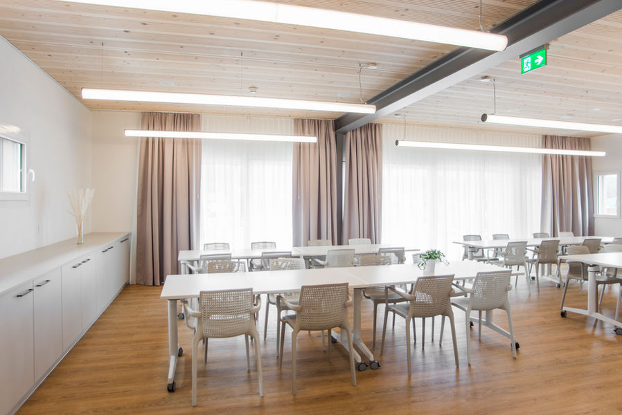 Les nombreux espaces du bâtiment se distinguent les uns des autres par leurs ambiances et proposent ainsi un lieu de vie diversifié. Une harmonie entre les différentes couleurs et matériaux offre une unité à l’ensemble.