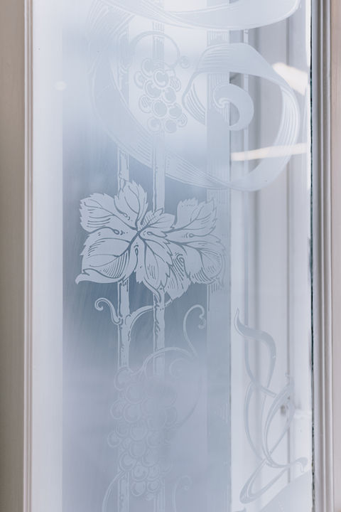 Un carrelage, produit sur mesure et posé en chevrons, rappelle les parquets anciens du bâtiment tout en assurant une facilité d’entretien sans faille. Afin d’apporter une touche de contraste et d’élégance, les boiseries se dotent d’un bleu marin grisé, teinte se mariant harmonieusement aux rideaux de couleur jaune clair habillant les fenêtres.